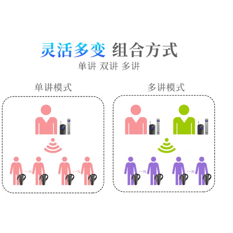 ●雙講功能:發(fā)射機(jī)無線按任何按鍵,實現(xiàn)雙人同時講話